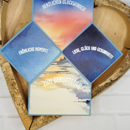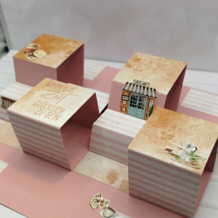 Im Klub von Karos Kreativkram haben wir diese tolle Würfel Karte gebastelt. verwendet habe ich folgendes Material Papier Kaffeeliebe Cardstock altrosa Stempel Glücks-Rad Wünsche Stempel Glücksteelichter XL Stanze Blüten tack in Stanze Alles gute Bei der Würfel – Karte habe ich mich mit den Produkten …