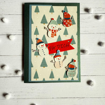 Hast du ein Ritual, wenn es im Herbst oder Winter zum ersten Mal schneit?Bei manchen gibt es dann den ersten Bratapfel. Eine schöne Idee, oder?Auf der heutigen Karte gibt es einige Schneemänner zu bestaunen: Material: Aus meinem Bestand: Anleitung: Aus dem glänzend grünen Papier eine …
