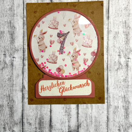 Hallo Ihr Lieben, und schon wieder hatten wir ein Geburtstag in der Familie. Diesmal ein Kindergeburtstag. Dazu habe ich die Stanze „Schneekugelwelt“ verwendet. Für den Hintergrund der Schneekugel habe ich einen Bogen des Designpapier „Tierische Partygäste“ ausgesucht und zu geschnitten. Die Zahl „7“, in der …