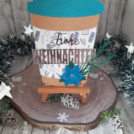 Eine Weihnachtskarte hab ich noch für Euch, diesmal in Becherform. Verwendet habe ich dafür: Stanzen: „Kaffee to Go Aufleger„, „Blumen Set„, „Zarte Zweige„, sowie „Frohe“ und „Weihnachten aus dem Adventskalender 2025 Designpapier: „Gemütliche Weihnachtszeit„ Cardstock: „Spiegelkarton„, „lagunenblau„, „karibikblau„, „Weihnachtsgrün“ und „Kraft Sand„ Sonstiges: Strasssteinchen, Stickles, …