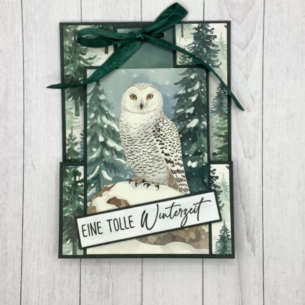 Hallo und ein frohes neues Jahr in die Runde (darf man, glaube ich, noch sagen). Heute habe ich dir wieder eine einfache Technikkarte mitgebracht, eine Treppenkarte mit den tollen DSPs Zauberhafte Wintereulen und Verschneiter Tannenwald. Für diese Karte brauchte ich folgende Papierzuschnitte. Als Basis habe …