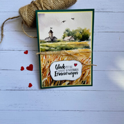 Spätsommerlich kommt heute meine Karte daher.Und sie soll ausdrücken, dass „Glück“ einfach oft die Summe der schönen Erinnerungen ist… Materialien: Aus meinem Bestand: Anleitung: Aus dem gelben Tonpapier die Mattung und dem Designpapier das Motiv zuschneiden und aufeinander kleben. Ein Stück Kordel darum binden und …