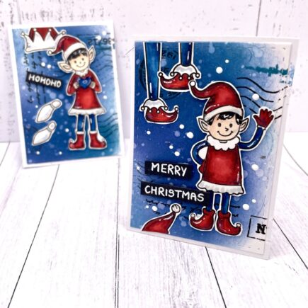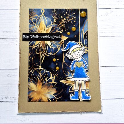 halli hallo Ich starte schonmal voll durch mit Weihnachtskarten und dafür eignet sich unser neues Stempelset Jonte Weihnachtself einfach ideal. Für den Hintergrund habe ich einen Bogen aus einem Set vom letzten Jahr : „Funkelnde Winternächte“ ausgesucht und meinen Elf passend dazu in blau coloriert. …