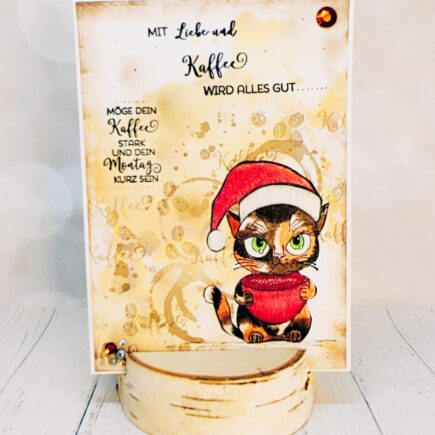 Hallo zusammen Die Kaffeetante hat eine passende Karte für euch, mit einer Stempelneuheit der Grummel-Katze. Manche kennen sie vielleicht aus dem Adventkalender 2024, jetzt ist sie endlich im Shop. Für die Katze braucht ihr: Grundkarte in 21×14,8 cm lange Seite gefalzt bei 10,5 cm. Nun …