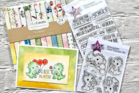 Für die Stempeltreff-Messe habe ich diese Radiergummis als Tauschis vorbereitet. Dafür habe ich einfach Reststücke Cardstock so zugeschnitten, dass sie als Bandarole um die Radiergummis passen. Darauf die gestempelten, colorierten und ausgeschnittenen kleinen Nilpferde kleben. Mit kleinen Schmetterlingen verzieren und Fertig sind schöne, kleine, Tauschis. …