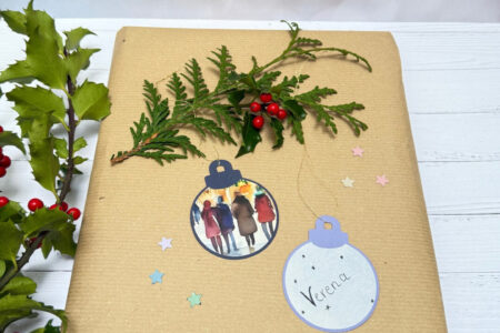 Wer freut sich nicht über ein hübsch eingepacktes und verziertes Geschenk.Meine Idee ist flott gearbeitet und zaubert hoffentlich dem zu Beschenkenden ein Lächeln aufs Gesicht: Materialien: Aus meinem Bestand: Anleitung: 2 Kugeln ausstanzen (hier: blau und lila)Aus weißem Papier und Designpapier je ein Kugelinnenteil ausstanzen …