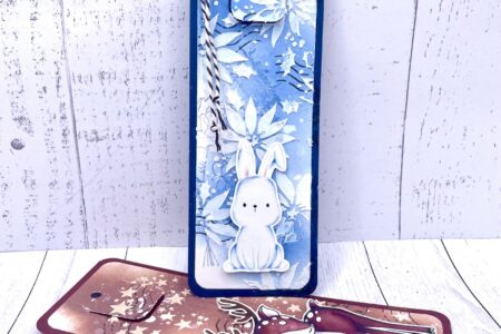 Durch die Öffnungen in der Karte kann man das Reh, das im Mondschein im Winterwald verzaubert wird, schon etwas erkennen.. Materialien: Aus meinem Bestand: Anleitung Vorderseite: Mit den 3 Distress Ink-Blautönen von außen (Rand) nach innen (zur Karte hin) wischen.Den Stencil auflegen und mit Oxice …