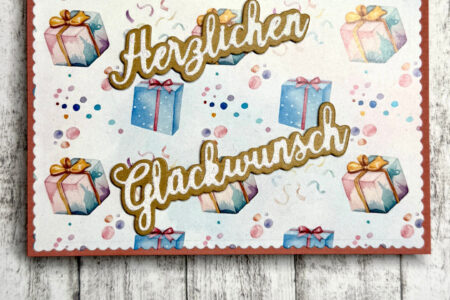 Hallo Ihr Lieben und Frohe Weihnachten, und doch habe ich heute nichts weihnachtliches für Euch. Denn auch in diesen Monat haben wir viele Geburtstage. Für diese Geburtstagskarte habe ich das Designpapier „Kunterbunter Kindergeburtstag“ mit der Stanze „Aufleger Wellenrand A6“ ausgestanzt. Auf das Designpapier habe ich …