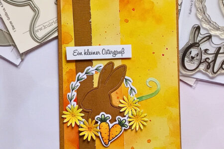 Halli hallo ihr Lieben, Ostern steht ja schon vor der Türe und passend dazu habe ich für euch eine Osterkarte gezaubert. Was habe ich verwendet? Zuerst habe ich eine braune Kartenbasis hergenommen. Darauf ein Designpapier geklebt, welches aus dem Set Aquarellblütenwiese ist. Damit der Hintergrund …
