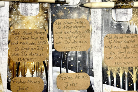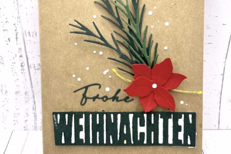 und viele schöne kreative Stunden. Material: Aus meinem Bestand: Anleitung: Aus silbernem Cardstock und der Stanze „Aufleger“ aus Set CD966 stanzen und Schneeflocken reinstanzen, dann auf die Klappkarte kleben. Die weiteren Stanzteile herstellen und befestigen. (Siehe Foto)Die Kordel wird an den Umschlag geknüpft und herzförmig …