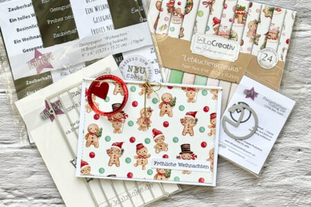 Im Einsatz LaCreativ – Designpapier „Lebkuchenschmaus“ Paper Pack 6×6″ – 24 Bogen Kulricke Designpapier – „Weihnachten“ Paper Pack 6″ 170g/m² Alternativ Bundel Designpapier Weihnachten & Designpapier Stanzen Kulricke Stanzschablone „Kreis Herz Insert“ Craft Die Bestand Aufleger Stanze, Folienkarton, Band Und loos Im Hintergrund seht ihr …