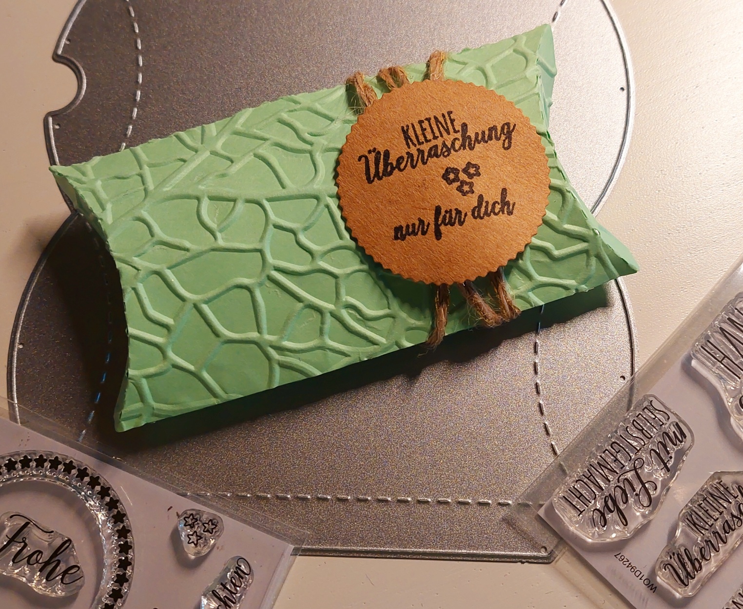 Ich habe eine kleine Verpackung gewerkelt mit "Einer kleinen Überraschung nur für dich".