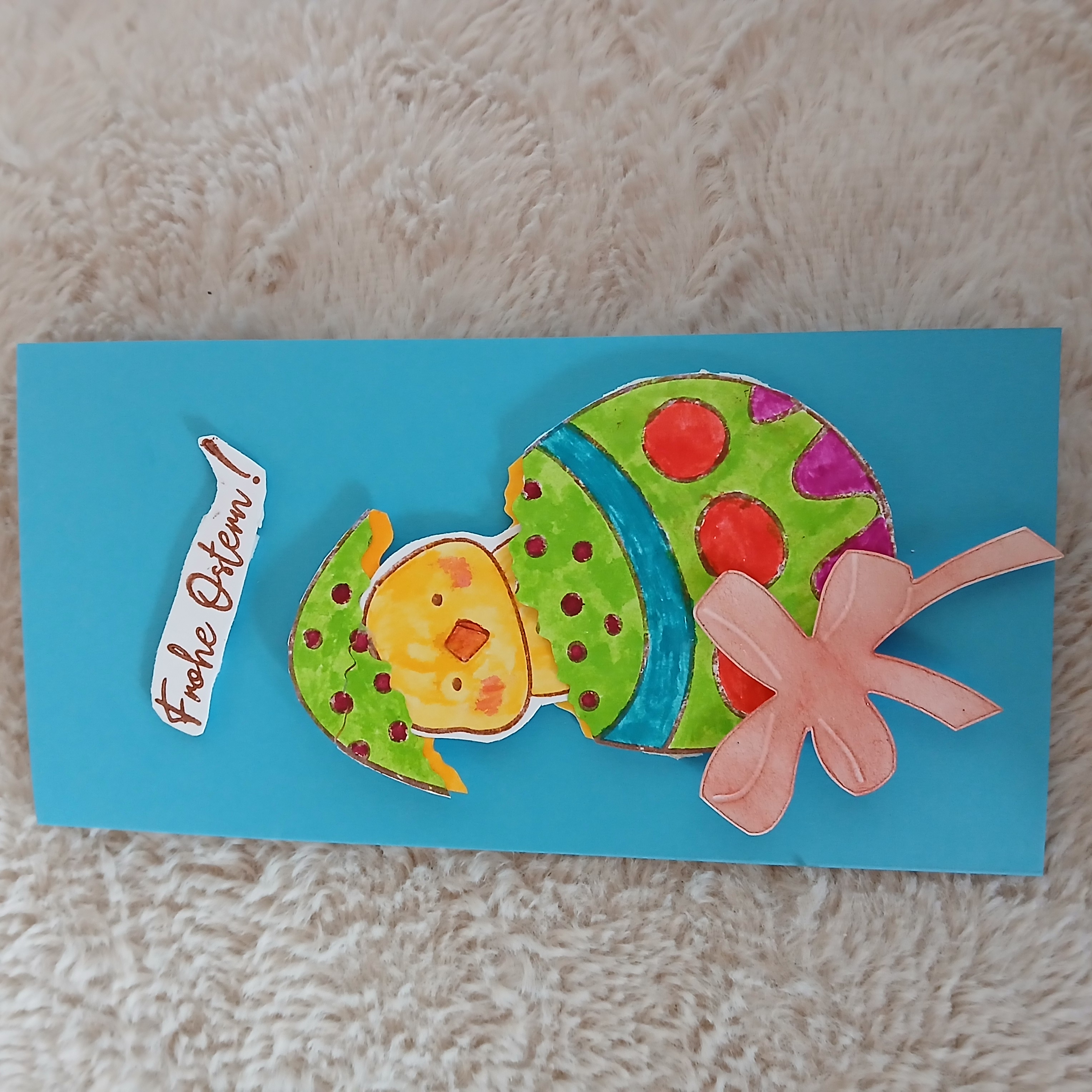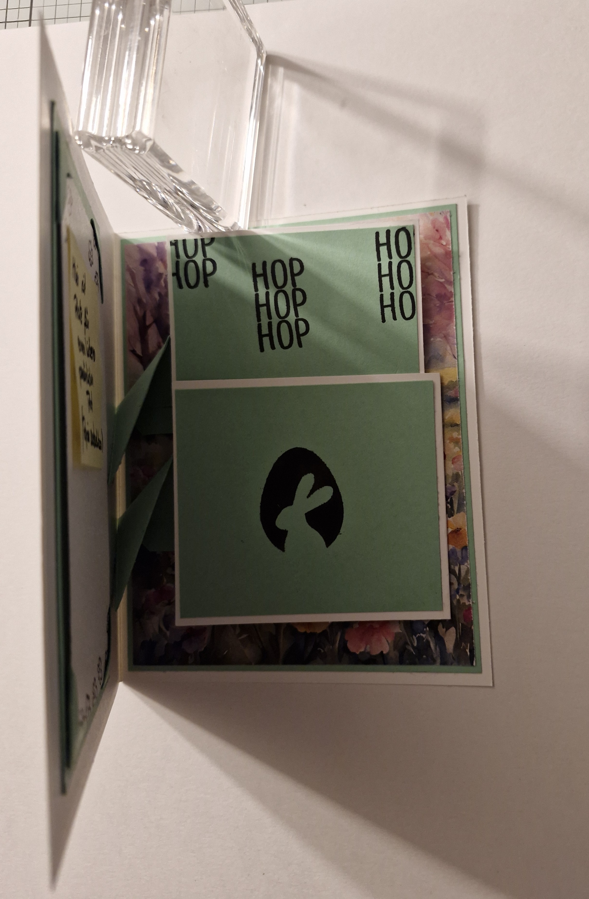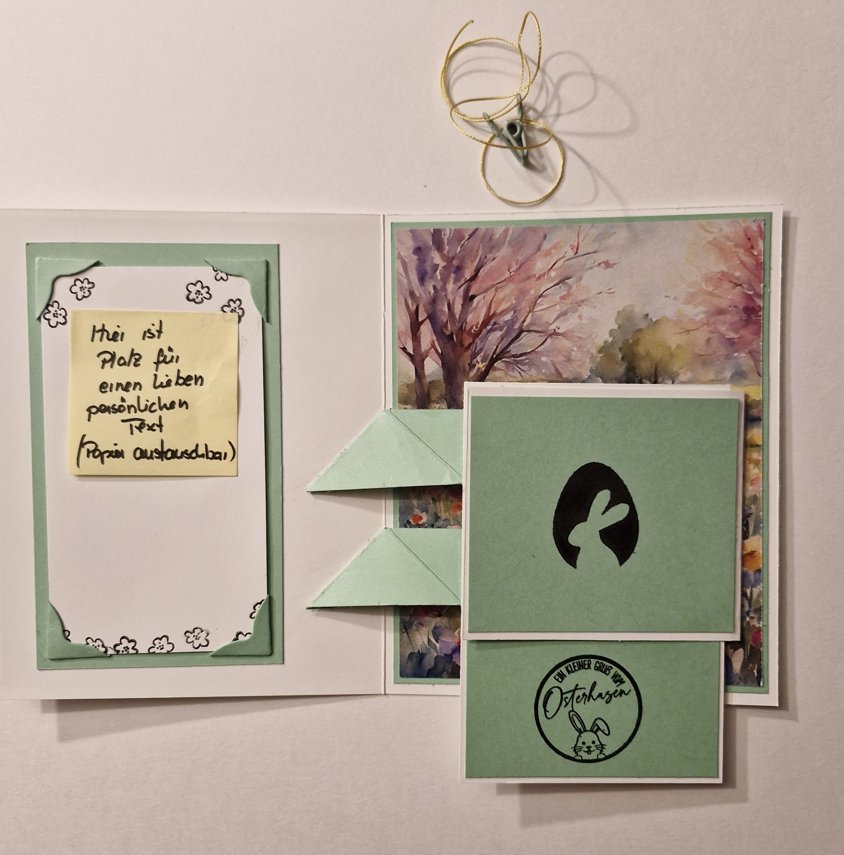 Ich habe eine Oster-Karte mit Slider gemacht und schöne Osterpapiere verarbeitet.