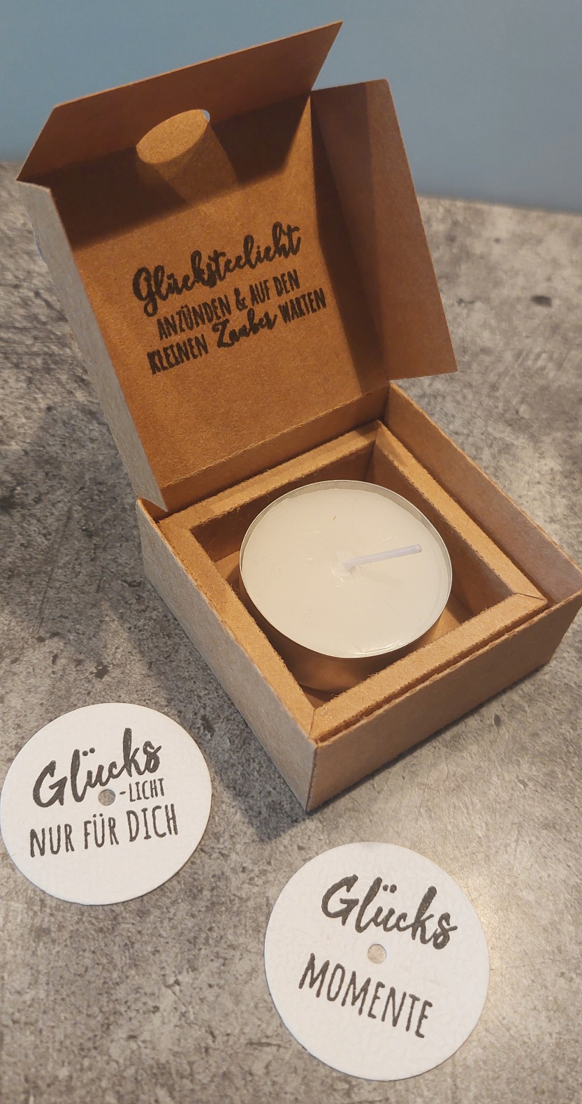 Mein verpacktes Glück versteckt sich in einer kleinen Teelichtschachtel, auch perfekt für kleine Süßigkeiten. Das perfekte kleine Mitbringsel zum Geburtstag auch in Kombi mit einer passenden Karte.