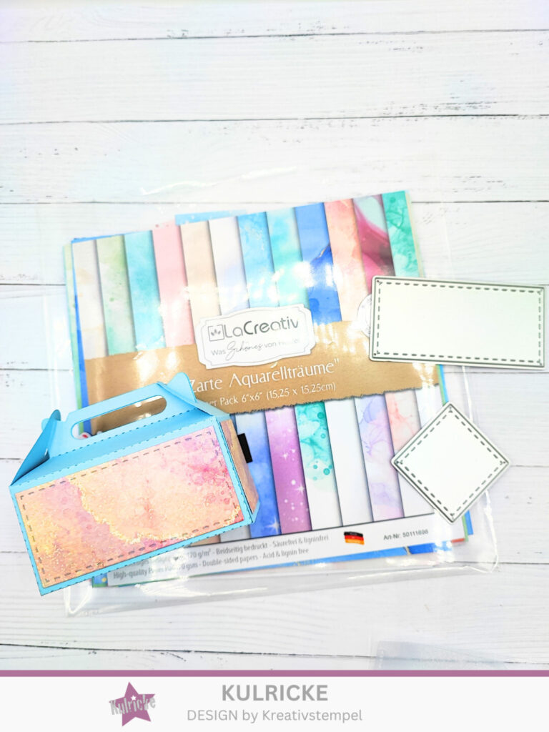 Diese könnt ihr ganz einfach mit unserer neuen Stanzschablone Geschenkbox werkeln. Wie das genau funktioniert habe ich euch in einer Video Anleitung auf unserem YouTube Kanal Kreatives mit Papier erstellt. Den Link findet ihr hier ganz unten im Beitrag.