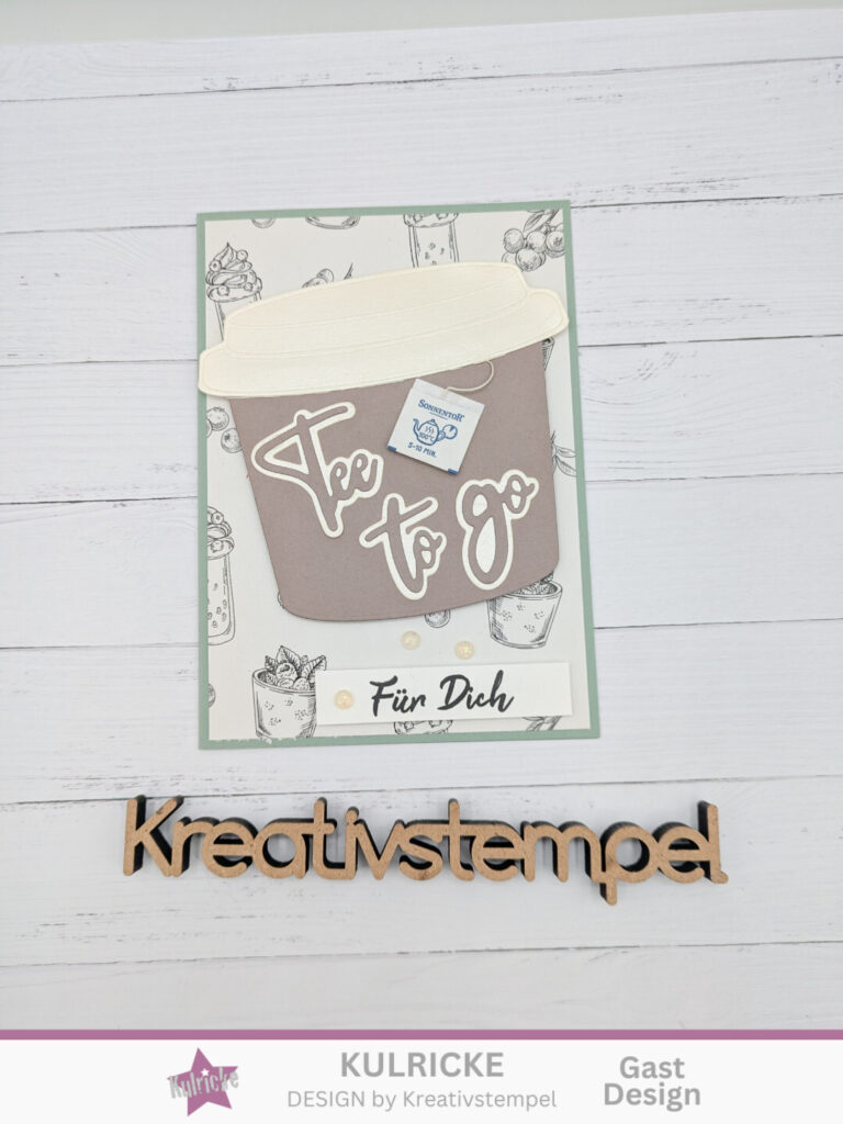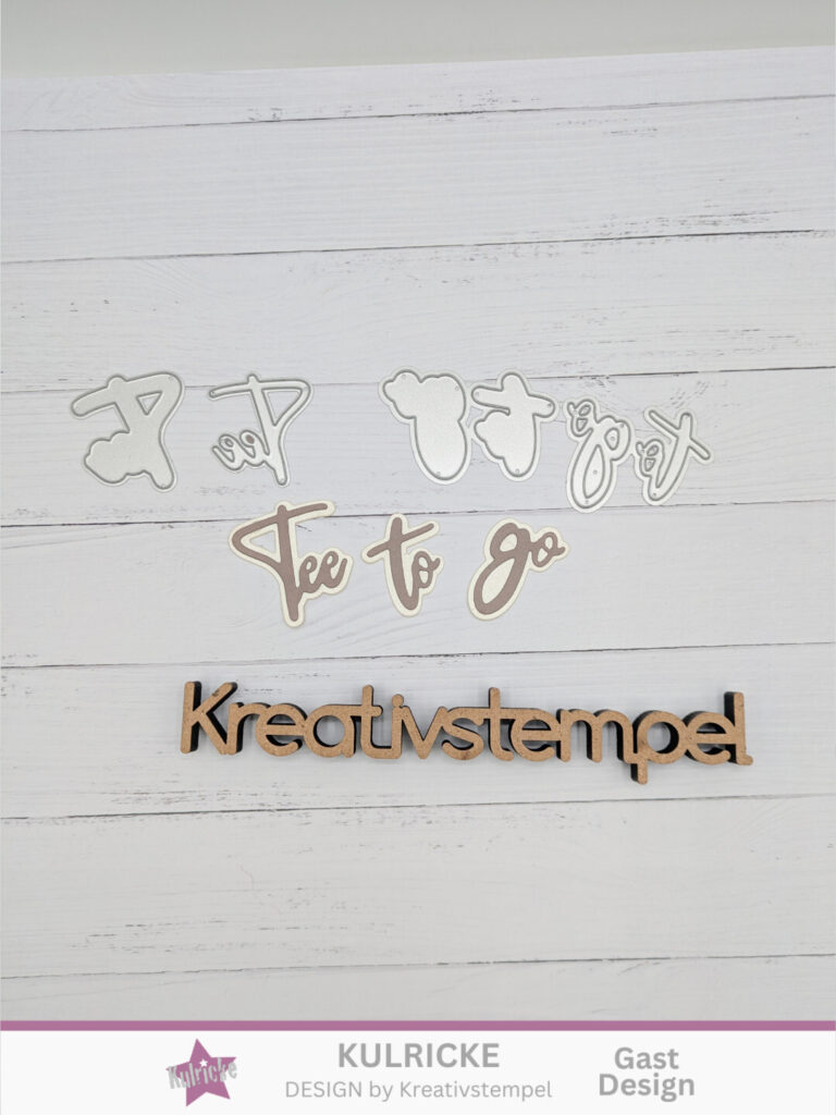 Nun mit den Schriftstanzen den Text Tee to Go ausstanzen und auf den Becher kleben.