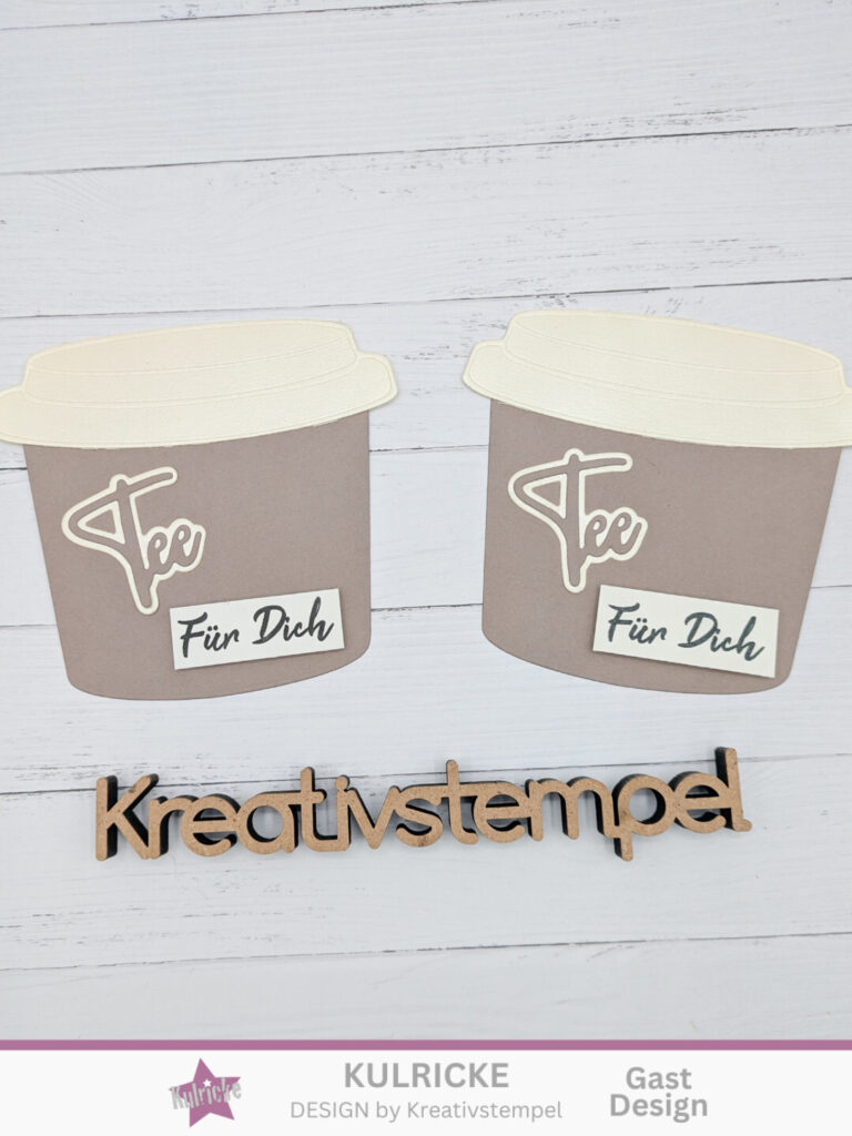 Für die kleine Teebeutel Verpackung braucht noch einmal zwei Teebecher. Bei beiden habe ich den Sprich Tee ausgestanzt und den kleinen Stempel Für dich dazu gesetzt.