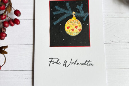 Es gibt ja wunderschöne Christbaumkugeln. Irgendwie ist doch da für jeden Geschmack etwas dabei und manche hütet man wie einen Schatz ein Leben lang. Ich habe heute eine mit Herzen, Punkten und Sternchen für euch: Material: Aus meinem Bestand: Anleitung: Die Weihnachtskugel auf das Aquarellpapier …