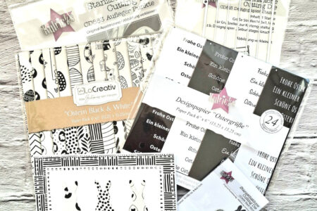 In Verwendung LaCreativ – Designpapier „Ostern Black & White“ Paper Pack 6×6″ – 24 Bogen Kulricke Designpapier – „Ostergrüße“ Paper Pack 6″ 170g/m² – 24 Bogen Alternativ: Bundel Designpapier Ostergrüsse & Designpapier Stanzen Kulricke Stanzschablone „Hasen Mini“ Craft Die Kulricke Stanzschablone „Aufleger Punkte“ Craft Die Die …