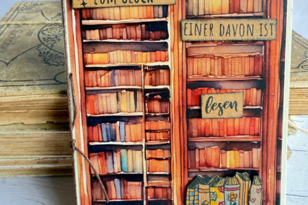 und für manche ist es ein Wandregal voller Bücher! Material: Aus meinem Bestand: Anleitung: Aus Designpapier das Bücherregal für die Klappkarte passend schneiden und aufkleben.Den Text und die Bücher auf braunen Cardstock stempeln, die Bücher colorieren und alles mit Abstand-Pads aufkleben. Eine brauene Kordel um …