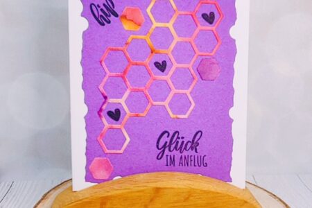 Hallo zusammen Heute habe ich eine neue Karte für euch. Ihr beaucht dazu: Fur die Karte braucht ihr eine Grundkarte in 21×14,5 cm gefalzt bei 10,5 cm. Der Aufleger wird mit einer Stanze aus dem Set Büttenzusatz ausgestanzt, ebenso die Waben. Die Waben zurecht schneiden …