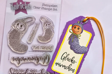 Halli hallo ihr Lieben, heute aus den Neuheiten aus dem Februar, zeige ich euch das Set Sorgenwürmchen. Ich habe das große Würmchen auf einem Tag in Szene gesetzt. Hierfür habe ich das neue Set Sorgenwürmchen hergenommen und das gößere Motiv gestempelt, ausgemalt und ausgeschnitten. Den …