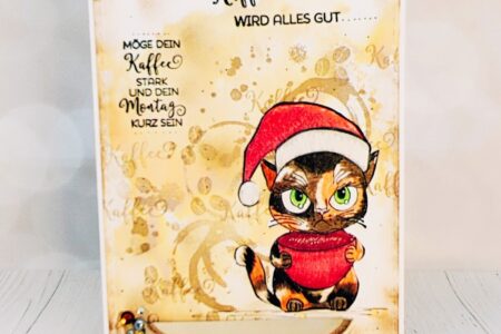 Hallo zusammen Die Kaffeetante hat eine passende Karte für euch, mit einer Stempelneuheit der Grummel-Katze. Manche kennen sie vielleicht aus dem Adventkalender 2024, jetzt ist sie endlich im Shop. Für die Katze braucht ihr: Grundkarte in 21×14,8 cm lange Seite gefalzt bei 10,5 cm. Nun …