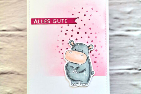 Die Stars Kulricke Stempel „Hippotastisch“ Clear Stamp Kulricke Stanzschablone „Alles Gute Fähnchen“ Craft Die Kulricke Schablone – Stencil „Punkte “ 6×6″ (15x15cm) Cardstock „Basic“ – Bastelkarton 220g/m² DIN A4 in pink Ranger – Tim Holtz Distress Oxide Ink Pad – Seedless preserves Ranger – Tim …