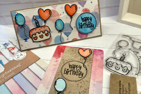 Heute habe ich wieder eine Geburtstagskarte mit dem tollen Designpapier „Kunterbunter Kindergeburtstag“ und dem neuen Stempelset „Luftballongrüße“ für Euch dabei. Dazu ein passendes Lesezeichen. Verwendet habe ich dafür: Stempel: „Luftballongrüße“ und „Mäuse Geburtstags Party„ Stanzen: „Aufleger Ticket“ und „Lesezeichen„ Designpapier: „Kunterbunter Kindergeburtstag„ Cardstock: „himmelblau“ und …