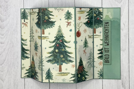 Mittwoch bedeutet Designteamzeit und ich habe heute wieder eine Technikkarte mit dem tollen DSP „Oh Tannenbaum“ mitgebracht und eine kurze Anleitung dazu. Ich habe hier einen halben DIN A4 Bogen des neuen Cardstocks Metallic grün gebraucht, das leider gerade ausverkauft ist. Den habe ich bei …