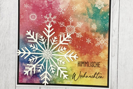 Hallo, hast du schon das neue DSP „Oh Tannenbaum“ gesehen? Darin befindet sich dieser tolle bunte Bogen, der mir sofort ins Auge sprang. Wieder so ein Design, das sich super für eine schnelle Karte eignet. Also eine quadratische Basiskarte geschnappt und los ging es, denn …