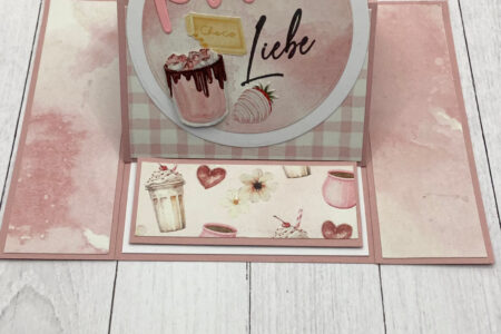 Guten Morgen und einen fröhlichen Wochenteiler, heute habe ich dir wieder eine Aufstellkarte mitgebracht. Dazu habe ich eine Basiskarte aus altrosa CS geschnitten mit den Maßen 21 x 14,8 cm, also ein halber DIN A4 Bogen. Bei 10,5 zog ich eine Falz und legte dann …