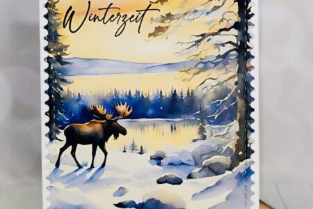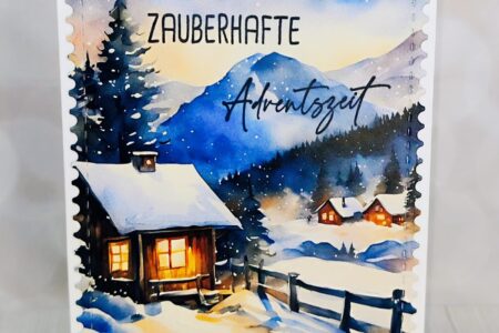 Hallo zusammen Heute gibt es wieder eine einfache Karte für die Adventszeit. Ihr braucht dazu: Grundkarte in 21×14,8 cm gefalzt an der langen Seite bei 10,5 cm. Mit der Briefmarkenstanze aus dem DSP einen Aufleger ausstanzen und auf die Grundkarte kleben. Nun nur noch Zauberhafte …