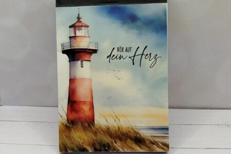 Das schöne Papier Geliebte Nordsee habe ich benutzt um einen Notizblock zu verschönern. Einfach den Block abgemessen und das Papier passend zugeschnitten. Um den ganzen noch eine besondere Note zu verleihen, habe ich noch in schwarz einen Spruch gestempelt und embosst. Und so hat man …
