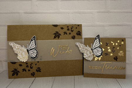 Anleitung für eine Schmetterlingskarte mit goldenem embossing Pulver.