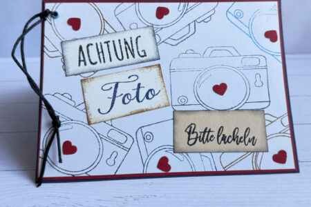 bitte lächeln! – Hallo, liebe Kreative,herzlich willkommen zu einem „Kamera“-Kartengruss: Materialien: Aus meinem Bestand: Anleitung: Aus nachtblauem Cardstock eine Klappkarte herstellen. Mit verschiedenen Stempelfarben die Kamera auf weißen Cardstock stempeln. Die Schrift auf verschiedene Reststücke stempeln, zurechtschneiden, die Ränder mit Stempelfarbe betupfen und aufkleben.(siehe Foto) …