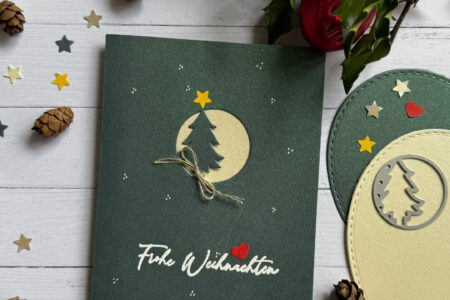 Eine kleine Stanze, die echt toll aussieht und vielseitig einsetzbar ist.Ob für Karten, Tischdeko oder Anhänger: Material Aus meinem Bestand: Anleitung: Aus dem grünen bzw. schwarzen Bastelpapier eine Klappkarte herstellen und das Tannenbäumchen stanzen. Schriften aufgestempelt und weiß embossen.Mit dem weißen Gelstift kleine Punkte aufmalen, …