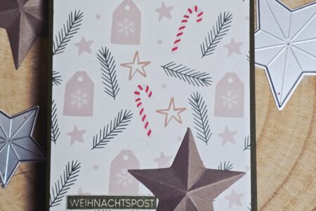 Bei mir ist die Sterne 3D-Stanze eingezogen. Mit dem Designpapier Gemütliche Weihnachtszeit. und einem Text aus dem Stempelset Frohes Fest Reverse ist diese Karte entstanden. Ich wünsche dir eine schöne Adventszeit. Verpasse nicht die Gelegenheit und schau dir die Beiträge zu unserem Adventskalender an, es …