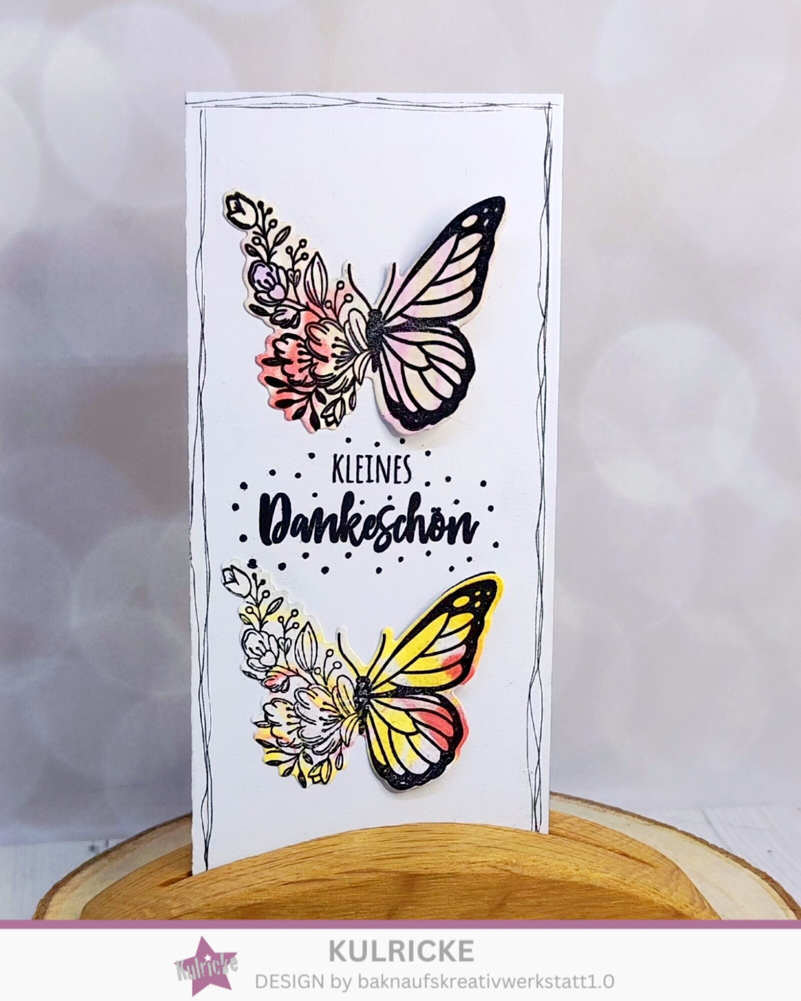 Ich bastle überwiegend Karten, Verpackungen und Fotoalben. Meine Hintergründe mache ich selbst, so das jede Karte einzigartig und immer anders aussieht. Das Basteln ist auch meine Ergotherapie, denn ich habe eine Spondyloarthritis Psoriatica einer Rheumaart mit Schuppenflechte, darüber schreibe ich auch hin und wieder auf meiner Seite auf Instagram, nach dem Motto: „Tabuthema, komm wir reden drüber“. Aber das Leben ist nicht grau in grau sondern Farbenfroh und so sehen auch meist meine Karten aus, Kunterbunt, fröhlich und niedlich.